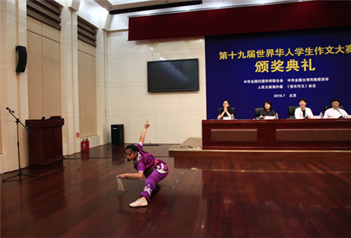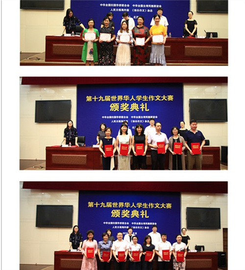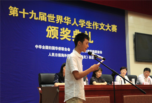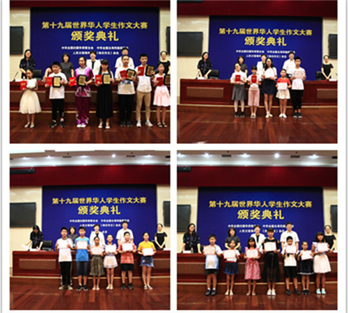 中國僑聯、全國臺聯、人民日報海外版、《快樂作文》雜志等單位的領導向獲獎者頒發了證書。人民日報海外版科教部主任劉菲宣布第二十屆世界華人學生作文大賽啟動!犊鞓纷魑摹冯s志總編輯關平主持頒獎典禮。