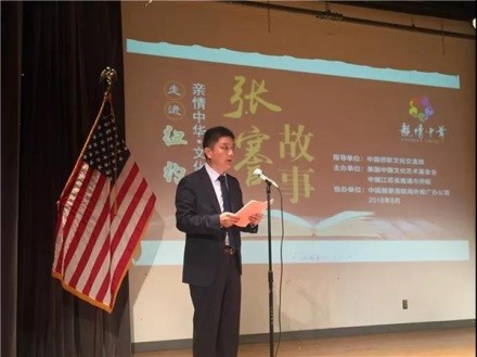 8月20日晚,“親情中華·文化講堂·張謇故事”大型多媒體演講暨新百年梅庵元年古琴音樂會在美國紐約皇后圖書館舉行;顒佑芍袊鴥S聯文化交流部指導,美國中國文化藝術基金會和江蘇省南通市僑聯主辦;江蘇南通古琴研究會、江蘇省海門市雷音琴坊承辦、中國國家畫院海外推廣辦公室、美國紐約梅庵琴苑協辦。中國駐紐約總領館領事鄭雷,美國江蘇友好協會主席周成棟、美國紐約華人總商會會長徐家樹等當地十多家華人社團僑領及200多名僑胞出席活動。