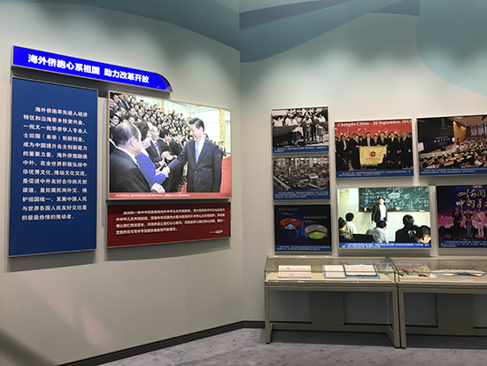 從包產到戶的“紅手印”雕塑到蛟龍號載人潛水器模型,從第一張個體工商業營業執照到一件件反映改革開放以來民生變化的老物件,支部同志們在認真觀看展品、照片的同時,還常常停下來展開熱烈的討論,并拿出手機拍下難忘的瞬間。特別是看到“海外僑胞心系祖國,助力改革開放”一篇時,大家更是感到格外親切。這里的展品和圖片雖然不多,但無論是正大康地(深圳)集團的0001號《中華人民共和國僑港澳僑投資企業批準證書》,還是一面面寫著“反獨促統,圓夢中華”的旗幟,無論是黃大年親手繪制的設備草圖和密密麻麻的工作筆記,還是海外唐人街上開展中華傳統文化活動的圖片,都生動地體現出“廣大海外僑胞是改革開放事業的開拓者、參與者、貢獻者,是實現中華民族偉大復興中國夢的重要力量”這一主題。