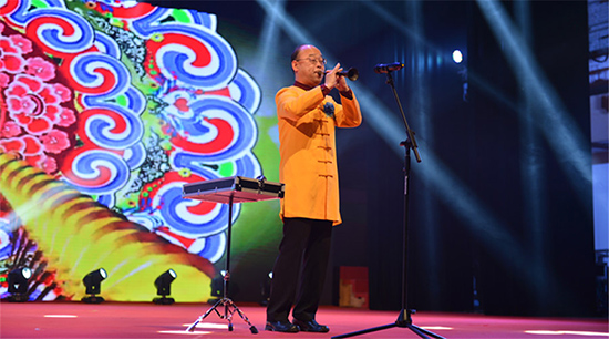 中國戲曲學院孫云崗副教授用嗩吶等10種吹管樂器演奏一曲《華夏同心曲》,女子水晶樂坊深情彈唱《我愛你中國》,東方歌舞團郭蓉激情高歌《紅旗飄飄》,抒發航天科技工作者情系桑梓、赤誠報國的愛國熱忱。