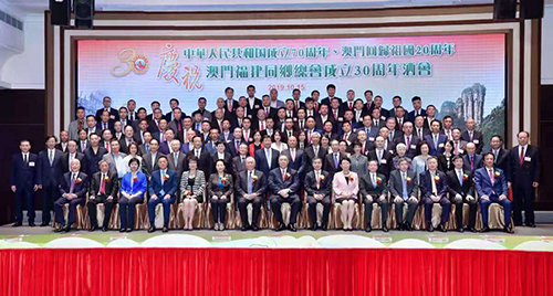 10月15日,由澳門福建同鄉總會主辦的“慶祝中華人民共和國成立七十周年、澳門回歸祖國二十周年、澳門福建同鄉總會成立三十周年”慶祝酒會在澳門旅游塔隆重舉行,澳門特區行政長官崔世安、全國政協副主席何厚鏵、中央駐澳門聯絡辦副主任張榮順、福建省政協主席崔玉英、中國僑聯副主席隋軍等共同主禮,與海內外閩籍鄉親約500人共襄盛舉。
