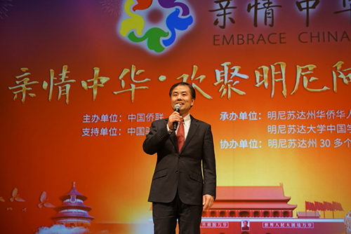 當地時間10月13日晚,中國僑聯“親情中華”藝術團在此次慰僑巡演的第四站明尼阿波利斯,為千余名華僑華人和被吸引前來的當地觀眾獻上一場盛大的文藝演出!坝H情中華”藝術團團長、中國僑聯文化交流部部長劉奇,中國駐芝加哥總領事館僑務組長盧曉輝,明尼蘇達州參議員艾瑞克·普瓦特,美國國會議員丁·菲利普的社區代表索耶爾等出席演出。
