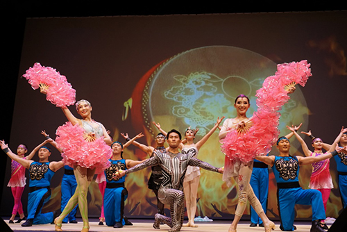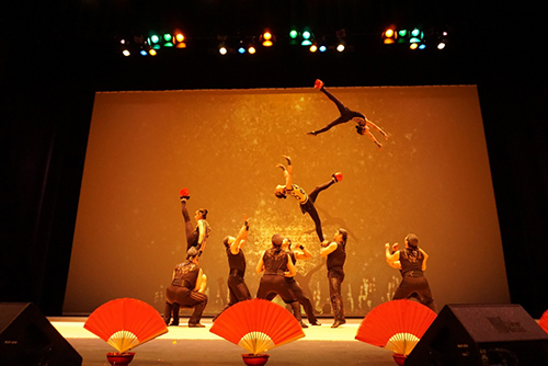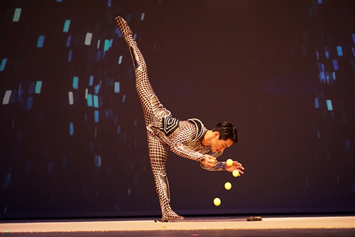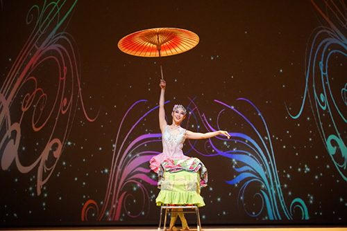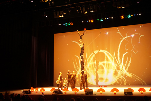 中國雜技團的10余名演員各顯其能,在單獨表演了5個精彩節目之后,再次集體亮相,在傳統頂碗技藝的基礎上增加高難度的拋接動作。當三名男演員疊成羅漢,穩穩接住被高高拋起的女演員,而她腳上的碗還扣得緊緊的、一個不落,現場觀眾全部起立鼓掌,叫好聲響徹全場。