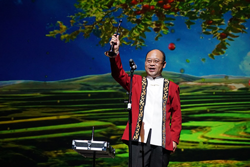 歌唱演員張原銘在觀眾的掌聲與應和聲中演唱了《咱老百姓》和《永恒的旋律》等歌曲,又清唱一曲悠揚的《在那遙遠的地方》,將僑胞的神思送到大洋彼岸那片日夜思念的土地。