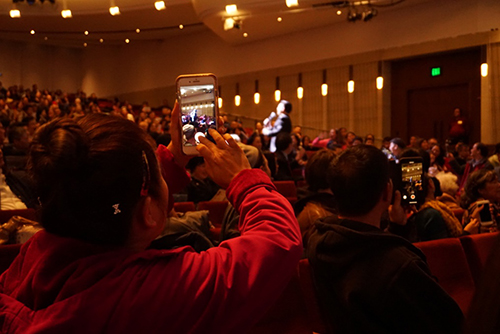 在明尼阿波利斯,中國文化一直廣受歡迎。演出當天,劇場二樓專門舉行了中美建交40周年圖片展,數十幅記錄中美關系重要歷史時刻的珍貴照片一一展出,宛如一條“時空隧道”。劇場內,外國面孔隨處可見,將近20%的觀眾都是當地的學者、企業家等。