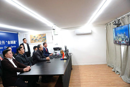 意大利是中國僑聯代表團訪問歐洲的第三站。在米蘭,萬立駿一行來到位于米蘭華僑華人工商會的溫州“全球通”海外服務點,與溫州市委常委、統戰部長施艾珠進行視頻連線,聽取溫州為僑服務工作介紹;舉行集中見面會,與米蘭地區各僑社、僑團負責人深入交流;走訪華人街區,實地了解僑胞生產生活狀況;出席米蘭文成同鄉會第七屆理事會就職典禮暨成立二十周年慶典并致辭;到文成縣海外服務中心米蘭分中心與文成縣委副書記、縣長章壽禹進行視頻連線,現場觀摩遠程視頻辦理公證業務的全過程。
