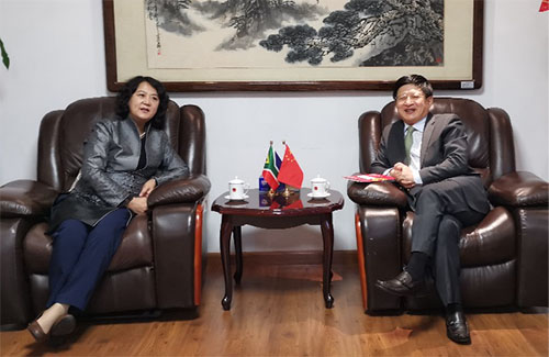 中國駐博茨瓦納大使館政務參贊王幫富、領事部兼辦公室主任申德春,中國駐南非約翰內斯堡領事館總領事唐中東、副總領事屈伯勛,中國駐南非開普敦領事館總領事林靜、副總領事曹利與代表團一行進行工作交流并出席相關活動。