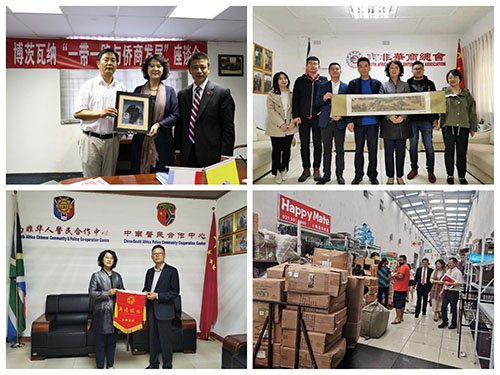12月3日—10日,中國僑聯副秘書長、經濟科技部部長趙紅英率代表團訪問博茨瓦納和南非,走訪僑社,看望僑胞,拜訪駐地使領館,了解僑情,在兩國舉行僑界座談會,宣講黨的十九屆四中全會精神,宣介“一帶一路”建設,傾聽僑胞訴求,介紹僑聯工作,獲得良好成效。