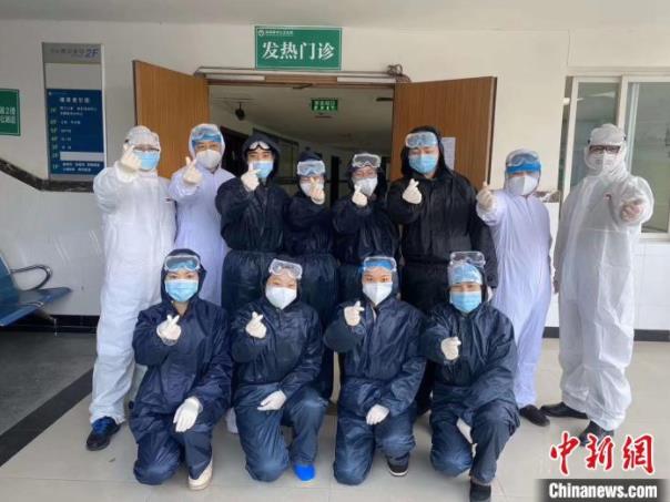 圖為王川(后排右一)與發熱門診醫護人員合影。重慶市僑聯供圖