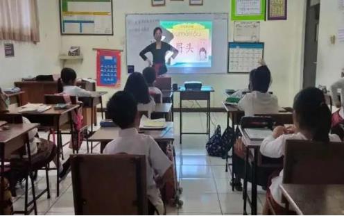 印尼泗水新中三語學校學生們在學漢語。(受訪者供圖)