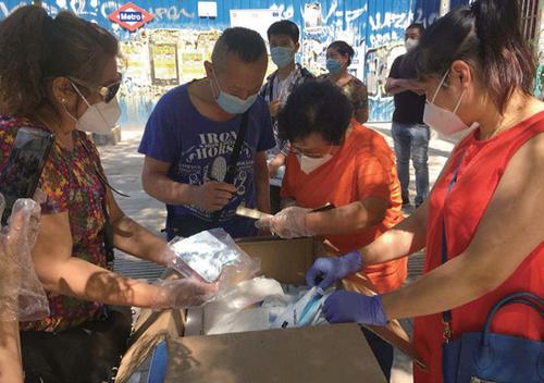 馬德里山東聯誼會成員分發口罩。(來源:馬德里山東聯誼會)