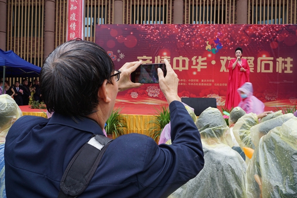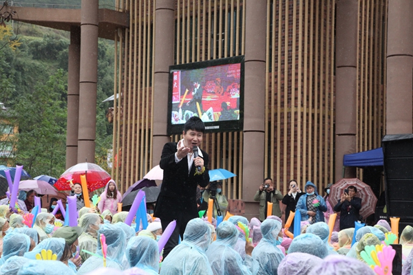 “太陽出來啰喂,喜洋洋啰啷啰……”嘹亮的歌聲在渝東的崇山峻嶺之間久久回蕩,唱不盡人們的喜悅。在“親情中華·歡聚石柱”文藝演出現場,雖然天空飄著蒙蒙細雨,但是臺上的藝術家和臺下的老百姓熱情高漲。他們相互應和,共同唱起《太陽出來喜洋洋》這段耳熟能詳的渝東民歌,抒發著對幸福生活的由衷贊美。