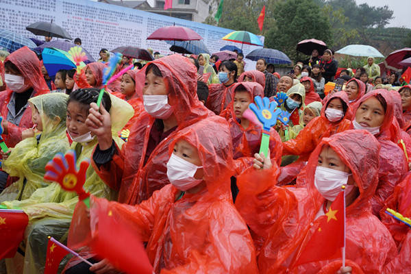 10月18日下午,江西省上饒市廣信區尊橋鄉上樂村小學內,前來觀看“親情中華·文藝輕騎兵”文藝演出的村民將露天舞臺前的一大片空地擠得水泄不通。頭發花白的老人、抱著娃娃的婦女、朝氣蓬勃的青年、活潑可愛的孩子……人人臉上掛著期待的笑容。