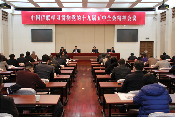 11月3日上午,中國僑聯召開學習貫徹黨的十九屆五中全會精神會議。中國僑聯黨組書記、主席萬立駿出席會議并講話。黨組成員、副主席隋軍主持會議,副主席李卓彬、齊全勝出席會議。