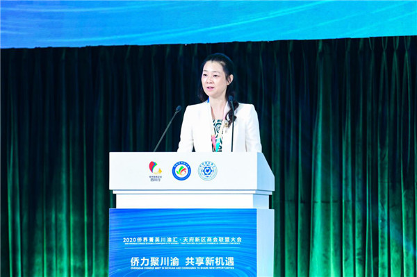 劉以勤代表中國僑聯和萬立駿主席對本次活動的舉辦致以熱烈的祝賀。她表示,習近平總書記在汕頭的講話,高度評價了華僑愛國愛鄉愛家人的優良傳統,充分肯定了廣大僑胞作出的重要貢獻。希望廣大僑商朋友抓住重大歷史機遇,融入雙循環、唱好雙城記,在實現自身事業新發展的同時,為中華民族偉大復興作出僑的貢獻;要發揮好橋梁紐帶作用,多渠道、多方式宣傳“成渝地區雙城經濟圈建設”發展機遇,講好川渝故事,團結僑界精英,不斷擴大海外朋友圈;川渝兩地僑聯要精誠合作、真抓實干、打好“僑牌”,為構建“雙循環”、唱響“雙城記”貢獻僑的力量。