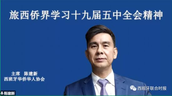 10月30日下午,由旅西僑界組織的《學習中國共產黨十九屆五中全會公報精神》視頻會議圓滿舉行。中國駐西班牙大使館領事參贊朱健,旅西僑界主要社團代表以及華文媒體代表等40余人參與了此次視頻會議。