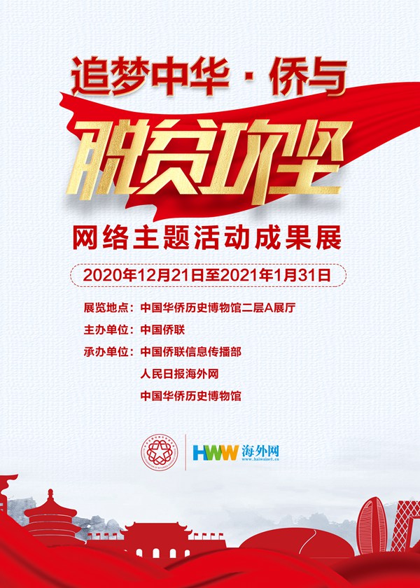 “追夢中華·僑與脫貧攻堅”網絡主題活動由中國僑聯主辦,中國僑聯信息傳播部、人民日報海外網承辦,旨在突出展現僑界在助力中國脫貧攻堅、全面建成小康社會中發揮的獨特作用,并通過僑界向世界講好脫貧攻堅的中國故事;顒訌2020年6月持續到2021年1月,分為“追夢中華·僑與脫貧攻堅”微紀錄片、“喜看僑鄉新變化”網友互動征集、“僑界脫貧攻堅圖片故事”征集與展示、“追夢中華·僑與脫貧攻堅”網絡主題活動成果展四大板塊,受到社會各界特別是僑界的廣泛關注。截至11月底,活動共收到投稿近萬篇,全網點擊量超6700萬次,覆蓋全球40余個國家和地區,匯聚成一幅由千萬網友共同描繪的“脫貧攻堅”勝利畫卷。網絡主題活動期間,中國僑聯和人民日報海外網組派聯合攝制組,分別赴貴州遵義市紅渡村、江西上饒市上樂村、湖南湘西自治州十八洞村拍攝了3部反映僑界助力脫貧攻堅的微紀錄片,微紀錄片播出以來,得到了海內外僑界的廣泛好評,點擊量超千萬次。