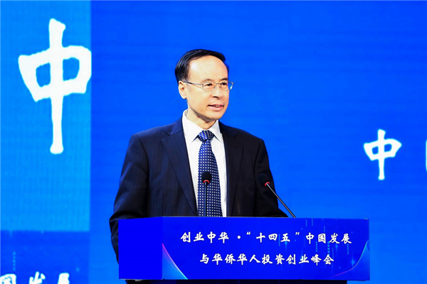 萬立駿在主旨講話中簡要介紹了中國僑聯今年以來的工作,充分肯定了廣大海外僑胞和歸僑僑眷為抗擊疫情和脫貧攻堅兩件大事所作出的貢獻。他指出,“創業中華”是中國僑聯傾力打造的一項重要品牌活動,至今已走過10個年頭。本次“創業中華·‘十四五’中國發展與華僑華人投資創業峰會”在汕頭舉辦,有著特殊的背景和重要的意義。汕頭是古代海上絲綢之路重要始發港,是全國首批4個經濟特區之一,汕頭港是國家“一帶一路”重點建設的15個港口之一。汕頭也是著名華僑之鄉。今年10月13日,習近平總書記到汕頭考察,對華僑作用充分肯定、寄予厚望,對汕頭發展作出重要指示。來到汕頭,身臨其境,習近平總書記的重要講話言猶在耳,更有著與眾不同的深刻感受。當前,全國上下正在深入學習貫徹黨的十九屆五中全會精神,為開啟全面建設社會主義現代化國家新征程而奮斗。我們舉辦此次峰會,目的是深入學習貫徹習近平總書記視察廣東、視察汕頭重要講話精神和黨的十九屆五中全會決策部署,傳遞黨和國家對僑界的關心關愛和殷切希望,激發僑界的積極性、主動性和創造性,促進新僑創新創業,助力汕頭改革開放和高質量發展,團結動員和示范帶動僑界力量為實現國家“十四五”規劃和二〇三五年遠景目標作出積極貢獻。