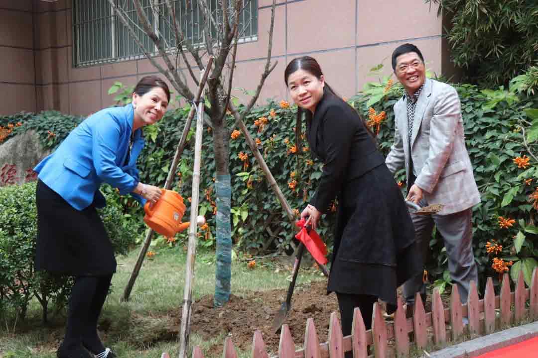 揭幕儀式后,全體領導、來賓、師生們來到僑心林親手種下一株株櫻花樹。那一株株象征著希望的櫻花樹,就像僑中朝氣蓬勃的學生一樣迎著陽光更加燦爛,就像僑中蒸蒸日上的事業迎著黨的陽光更加輝煌,就像愛國愛鄉的華僑背靠祖國彰顯著“進取、勤勞、開放、包容、奉獻”的華僑精神。