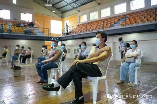 5月29日,在中國駐多米尼加大使館積極協調下,多政府在首都圣多明各奧林匹克中心擊劍館為旅多華僑華人舉辦“春苗行動”第二場新冠疫苗接種專場,為僑胞進行二劑次集中接種。多副總統培尼亞親赴現場,視察接種工作,慰問接種僑胞。中國駐多米尼加大使張潤陪同。