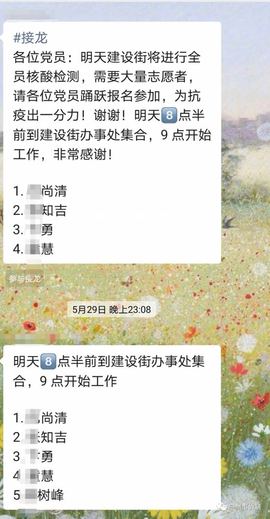 廣州市僑聯接到上級通知——“廣州市僑聯支援越秀區疫情防控黨員突擊隊于30日早上到崗,全員整裝待發!币宦曁柫,群起響應!短短一小時,市僑聯黨員突擊隊就于凌晨組建完成。