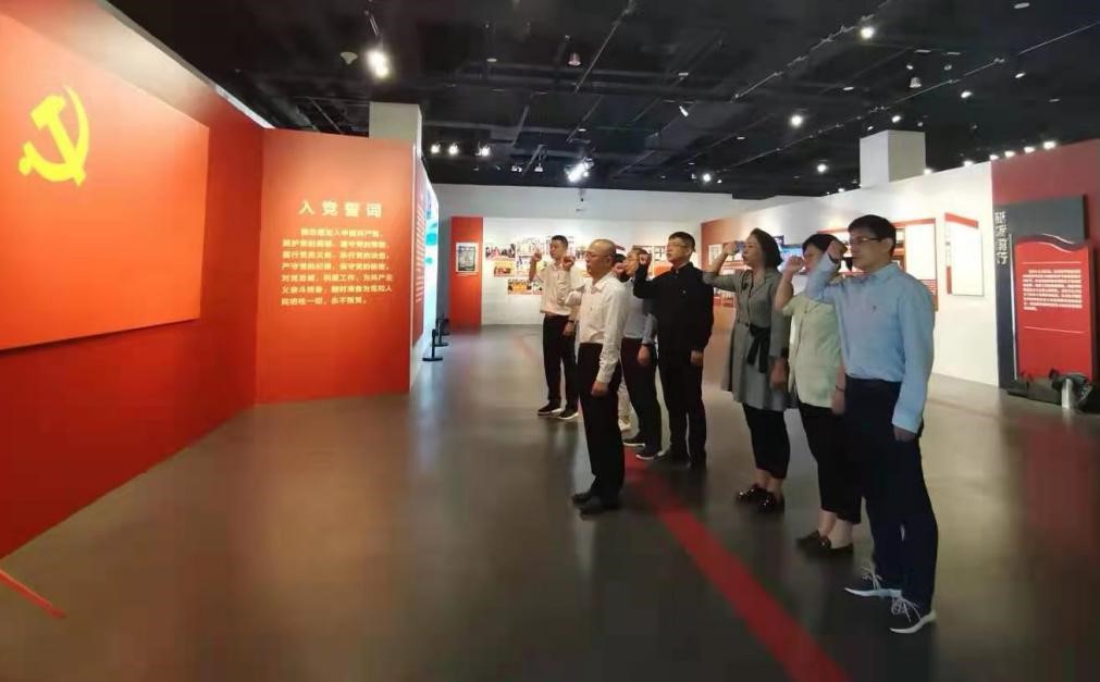 參觀結束時,全體黨員面對黨旗,由支部書記張毅同志領誓,莊嚴地重溫了入黨誓詞。