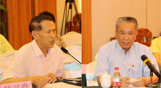 省僑聯原黨組書記周經緯(右)、省僑聯原巡視員邢福孝(左)在座談會上分享體會