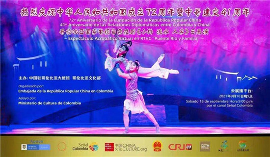 9月18日晚黃金時間,中國駐哥倫比亞大使館和哥倫比亞文化部,聯合在哥倫比亞國家電視臺、第32屆加勒比國際戲劇節開幕式上,共同舉辦“江蘇省華僑文化交流基地”江蘇省雜技團創作的雜技劇《小橋流水人家》國慶系列云首演,掀開了中華人民共和國成立72周年暨中哥建交41周年系列獻禮活動。CGTN西班牙語部、中國文化網等中哥機構和媒體的電視端、官網及YouTube、Facebook等新媒體賬號同步播出。中哥各界民眾與加勒比地區26萬觀眾和粉絲,歡聚云中,好評如潮。