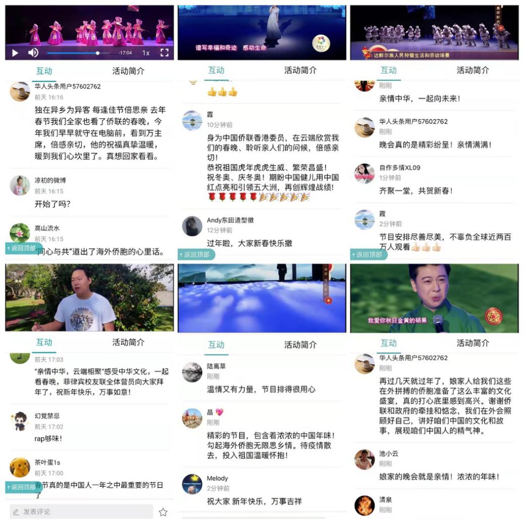 中國僑聯港區常委王錦彪:這次的僑聯春晚節目更加多元化、大眾化,易于激發青少年僑胞的觀賞興趣。印象最深的是民族舞蹈串燒,可謂美不勝收,嘆為觀止。幾位歌唱家把廣大歸僑僑眷和海外僑胞愛國愛鄉之情融入歌中,唱出了廣大僑胞與祖(籍)國同心與共的僑界心聲。真誠期待中國僑聯能多多舉辦這類心系僑胞、凝聚僑胞的線上活動。