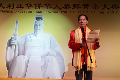 “天地玄黃,宇宙洪荒。華夏文明,源遠流長!卑拇罄麃唶H文化產業協會主席、澳大利亞非物質文化遺產發展研究中心共同主席楊志唯飽含深情地恭誦了拜祖文。