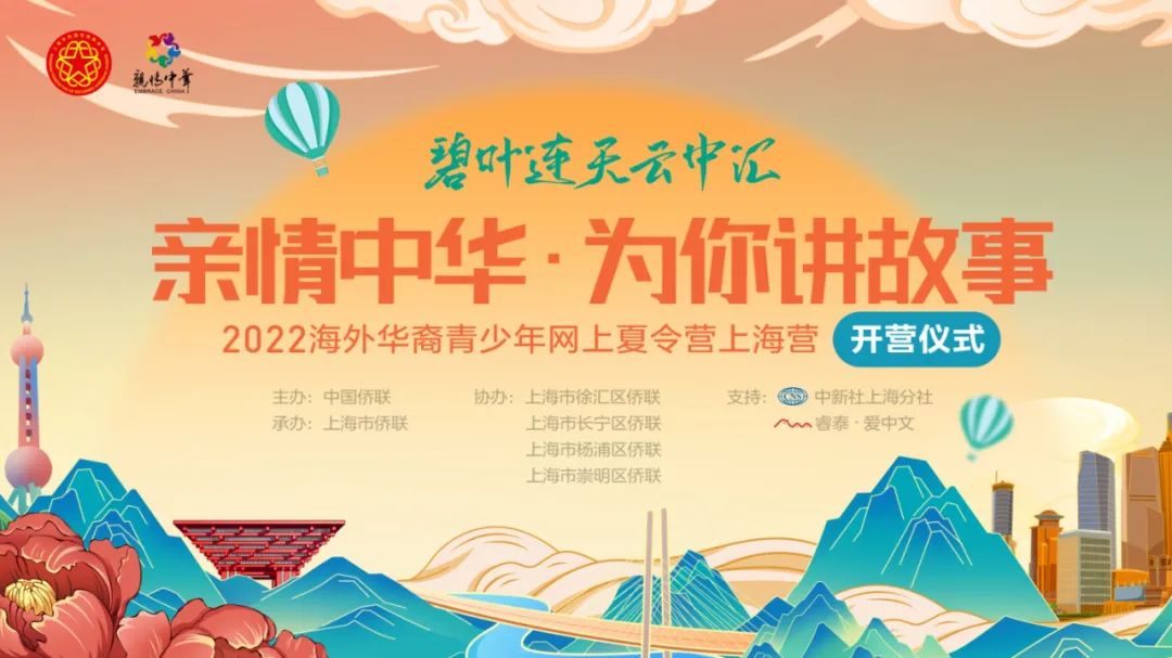 8月10日下午,由中國僑聯主辦,上海市僑聯承辦,上海市徐匯區、長寧區、楊浦區、崇明區僑聯協辦的2022“親情中華·為你講故事”海外華裔青少年網上夏令營上海營開營。市僑聯主席齊全勝、副主席陶勇,徐匯區僑聯黨組書記張雪梅、長寧區僑聯主席方靜燕、楊浦區僑聯主席宋南暉、崇明區僑聯黨組書記施斌出席開營式。來自日本、西班牙、南非、美國等4個國家的500多名華裔青少年“云聚”上海,感受中華優秀傳統文化的博大和魅力。