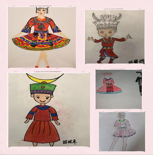 (營員們上完“走進世界苗鄉”課程后,畫出多姿多彩的苗族服飾)