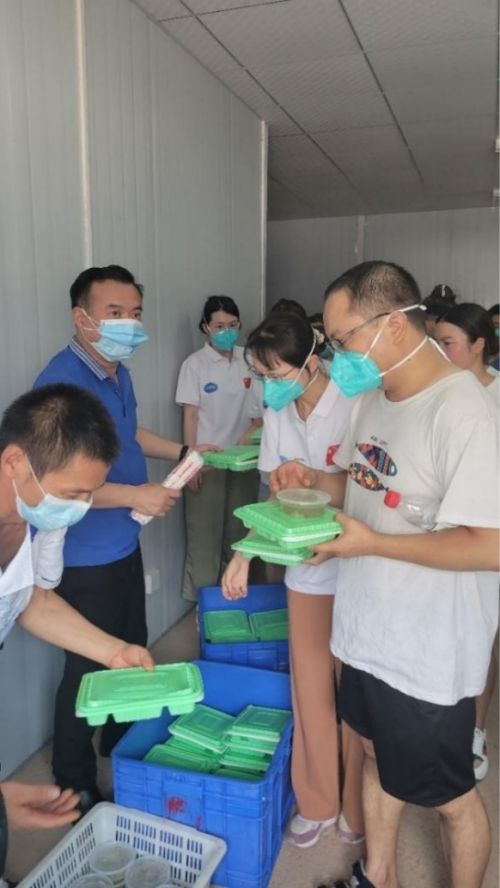 市僑聯兼職副主席、南充市大蓉和酒樓總經理于烈陽指揮配送工作餐