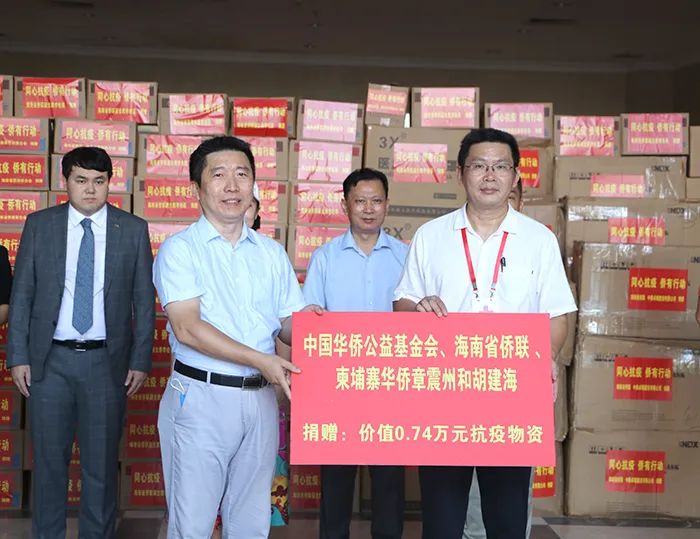中國華僑公益基金會、海南省僑聯、柬埔寨華僑章震州和胡建海捐贈FFP2口罩10800個,價值人民幣0.74萬元