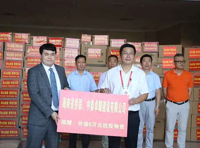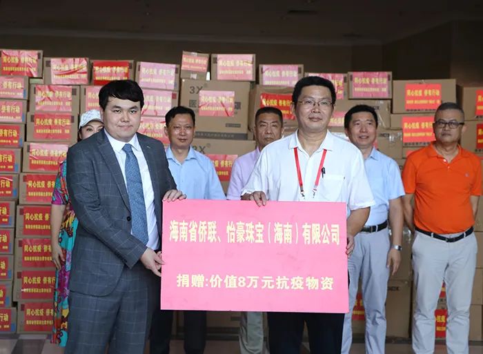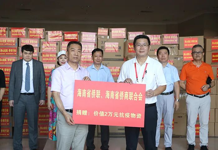 8月23日下午,海南省僑聯在?谂e行接受捐贈抗疫物資交接儀式