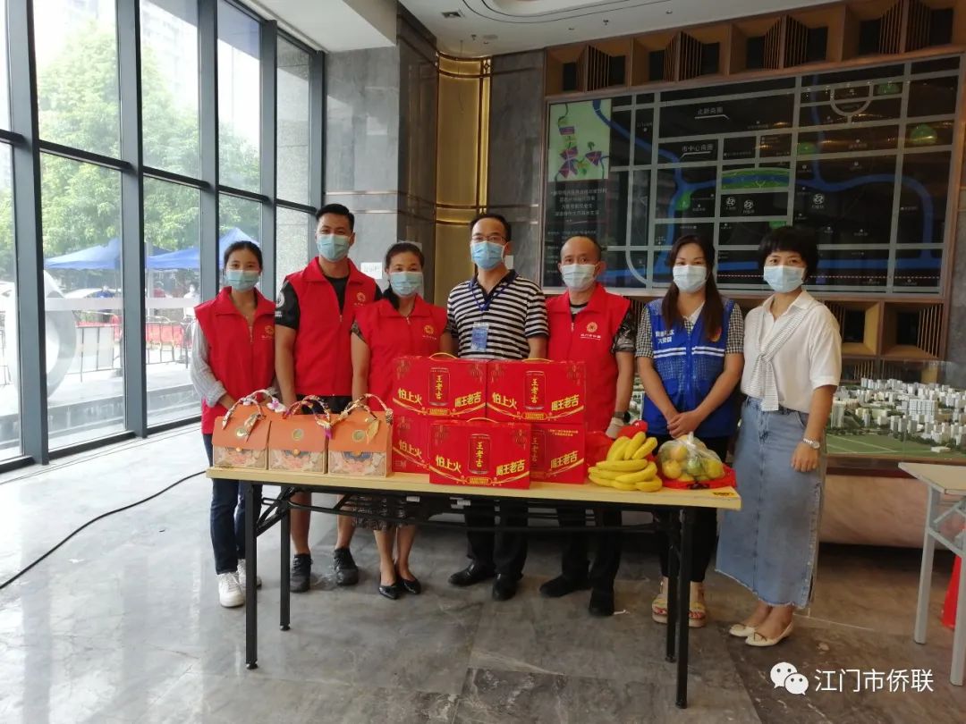 新會區僑聯名譽主席及委員等僑界代表(按姓氏筆畫排序):田漢華先生(澳門新會大澤同鄉會監事長)、馮嘉強先生(香港司前同鄉會理事長)、莊一霖先生(新會區環球青年協會副會長)、劉力仍先生(澳門新會大澤同鄉會會長)、麥群裕先生(伯利茲中國和平統一促進會會長)、陳素燕女士(澳門江門同鄉會副會長)、高思文先生(香港新會同鄉會監事長)先后捐贈了一批價值13.8萬元的消毒液、藥品、風扇、冰塊、清涼飲料,提供車輛運送抗疫物資,支持家鄉人民抗擊疫情。