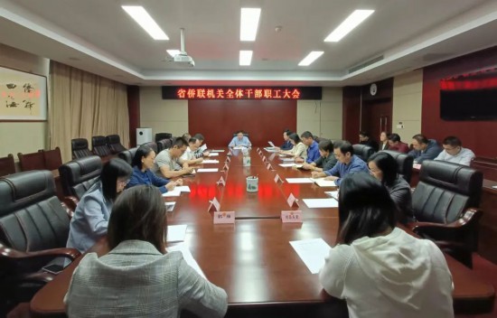 10月25日,江西省僑聯召開全體干部職工大會,傳達學習黨的二十大精神,以及全省領導干部會議和省委常委會精神,對學習宣傳貫徹黨的二十大精神進行動員部署,要求全體干部職工迅速把思想和行動統一到黨的二十大精神上來,完整準確全面貫徹黨的二十大精神,準確把握新時代僑聯工作重點任務,奮力譜寫新時代江西省僑聯事業發展新篇章。會黨組書記、主席唐舒龍主持會議并講話,黨組成員、副主席王強,秘書長蔡峻出席會議。