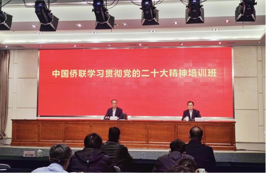 12月8日上午,中國僑聯在中國華僑歷史博物館舉行學習貫徹黨的二十大精神專題報告會。中國僑聯黨組書記、主席萬立駿出席并作“踔厲奮發擔使命、勇毅前行譜新篇,以黨的二十大精神引領僑聯事業奮進新征程”的報告。他強調,僑聯黨員干部要完整、準確、全面領會黨的二十大精神,切實把思想和行動統一到黨的二十大精神上來,把力量凝聚到黨的二十大確定的各項任務上來,進一步推動黨的二十大精神在僑聯落地落實,為全面建成社會主義現代化國家、全面推進中華民族偉大復興凝聚僑界力量。中國僑聯黨組成員、副主席程學源主持會議。