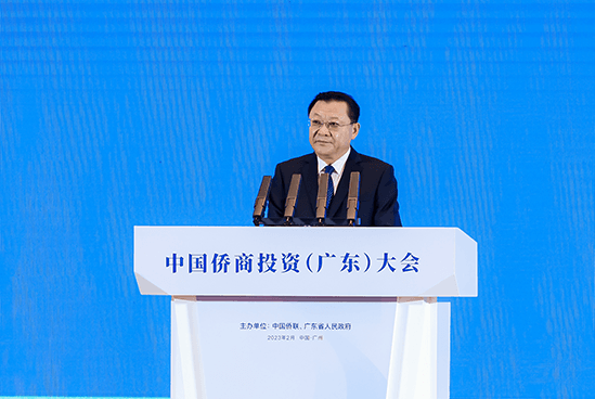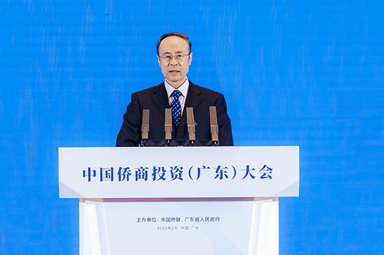 2月25日,中國僑商投資(廣東)大會在廣州隆重開幕。大會由中國僑聯和廣東省人民政府聯合舉辦。中央政治局委員、廣東省委書記黃坤明,中國僑聯黨組書記、主席萬立駿,廣東省委副書記、省長王偉中,廣東省人大常委會主任黃楚平,廣東省政協主席、省委常委、廣州市委書記林克慶,廣東省副省長張新,中國僑聯黨組成員、副主席連小敏,全國政協常委、中國僑聯顧問、中國僑商聯合會常務副會長李卓彬等出席開幕式。廣東省委常委、統戰部部長王瑞軍主持大會。廣東各地級市主要負責同志,橫琴、前海、南沙和廣東省有關部門負責同志,來自五大洲50多個國家和地區的僑商嘉賓和僑界人士等600多人現場出席大會。
