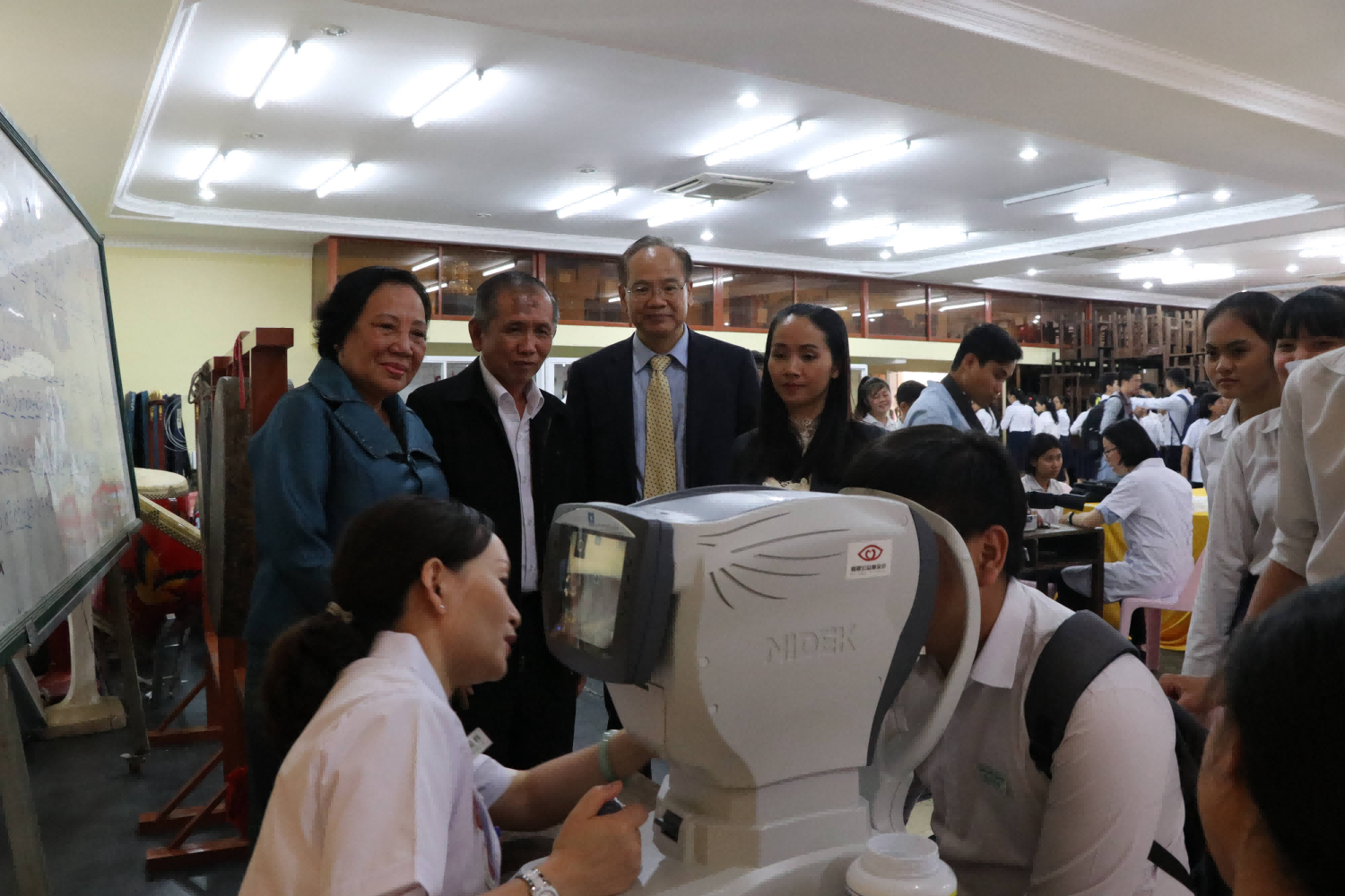 2018年,第二屆“一帶一路·僑愛心光明行”走進柬埔寨、老撾,為7100名柬埔寨、老撾學生進行視力篩查,免費配鏡1400余副。