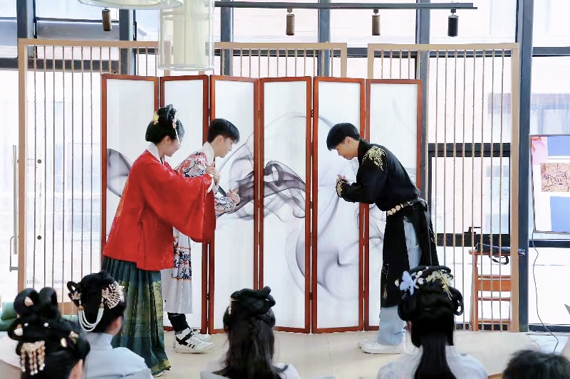 海外華裔青少年印象最深的就是在平潭著漢服行古禮,感受傳統文化之美。課程以“尋根之旅——傳承文化·情暖冬至”為主題,既有漢服妝造體驗,也有講述冬至傳統節日習俗和中國傳統禮儀的文化課,還有投壺、畫扇、龍燈等傳統小游戲和手工制作,學員們沉浸式體驗中國古代傳統文化。課堂上,老師細致地講述著中國傳統禮儀,學員們穿著漢服認真聆聽!皩χ袊鴤鹘y節日習俗和傳統禮儀等相關知識的了解,感受傳統文化之美,激發了我們對優秀傳統文化的學習熱情!睂W員們說。學員們體驗了畫扇、魚燈、龍燈等手工制作。老師耐心地講解著扇子畫獨特的魅力和文化內涵,深深吸引了大家的注意力。隨著一根根線條、一筆筆色彩的描繪,粉紅的荷花、翠綠的竹子等躍然于扇面之上。