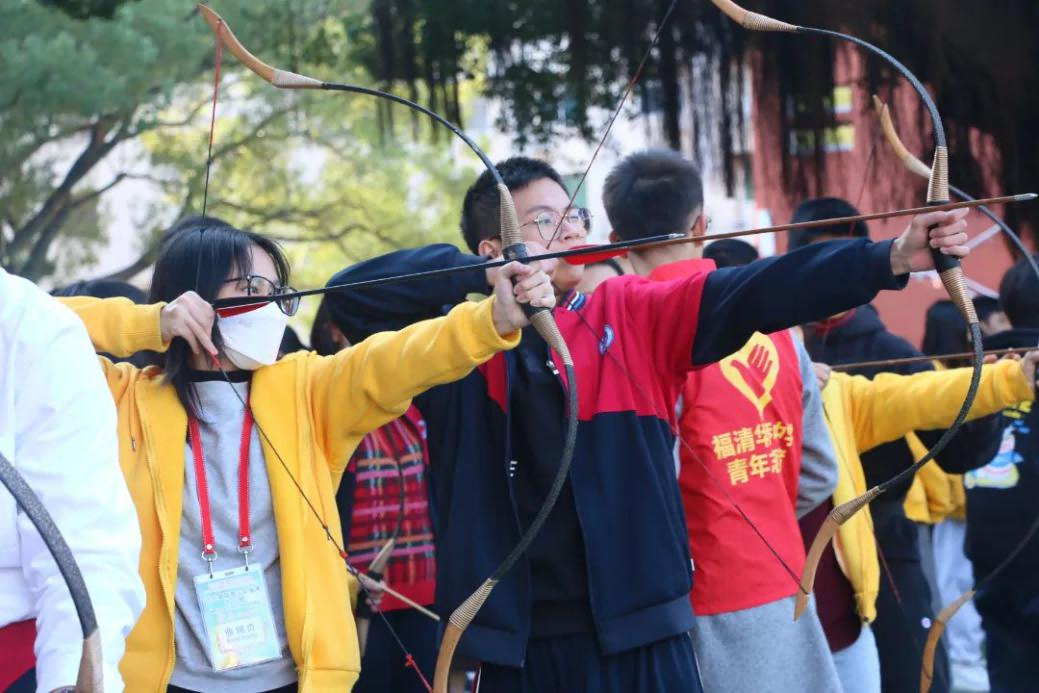 在華僑中學的操場上,營員們觀摩了僑中學生的射箭表演賽。瞄準箭靶、彎弓拉弦、精準射箭……“神射手”們的精彩箭術贏得了陣陣喝彩,并吸引了印尼華裔學生上前體驗。在福清僑中學生的幫助下,一場沉浸式的射箭體驗如火如荼地開展起來,讓營員們過足了癮。