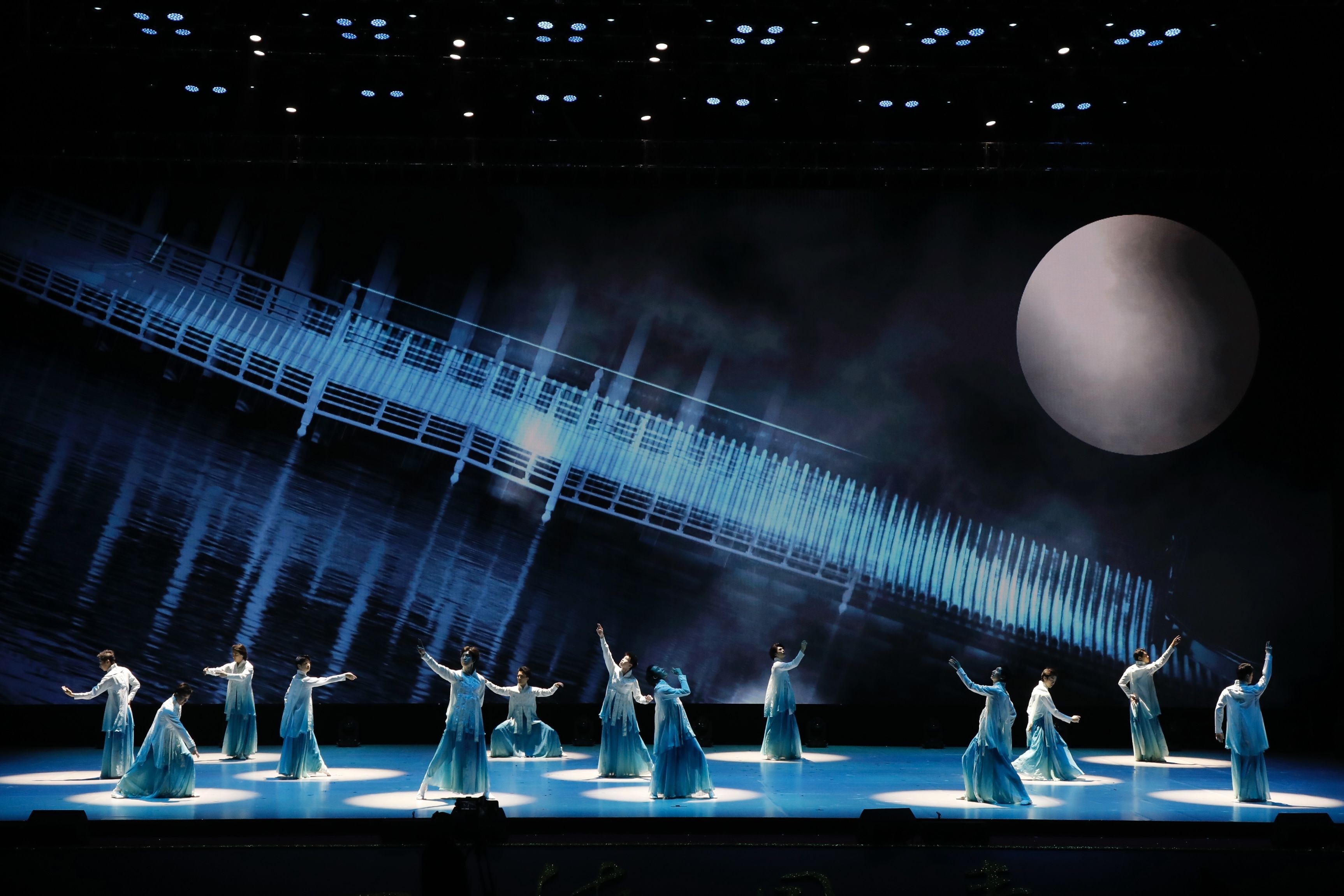 在熟悉的《但愿人長久》歌曲旋律中,舞蹈演員一邊吟唱著北宋文學家蘇軾《水調歌頭·明月幾時有》中的詞句,一邊翩然起舞!八暮M骸备郯膱F總導演、中國煤礦文工團副團長何利山說:“男子群舞《明月照人》是煤礦文工團最新推出的原創曲目,將舞蹈與朗誦、演唱融合,藝術化呈現古人抒發情感時‘手之舞之足之蹈之’的生動情景,全面展現了蘇軾原作中浪漫而博大的情懷。我們也借這個作品在元宵佳節向香港同胞傳遞‘但愿人長久,千里共嬋娟’的美好祝愿!
