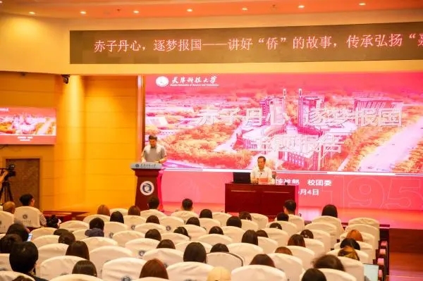 為深入貫徹落實習近平總書記視察天津重要講話精神,慶祝新中國成立75周年和紀念陳嘉庚先生誕辰150周年,近日,天津市僑聯主席、黨組書記李占勇受邀前往天津科技大學,作《赤子丹心、逐夢報國——講好“僑”的故事,傳承弘揚“嘉庚精神”》主題報告,加強廣大學生對“僑”的認識,引領廣大青年將愛國之情、報國之志融入強國建設、民族復興的偉大事業中。學校黨委書記白海力,黨委副書記安玉健、賈啟君在會前與李占勇主席進行了親切交流。校黨委統戰部、校團委負責同志參加,市、校、院三級“青馬工程”培訓班學員,校研究生支教團志愿者、2024年西部計劃志愿者和團學骨干200余人共同聆聽了講座。報告會由校黨委副書記賈啟君主持。