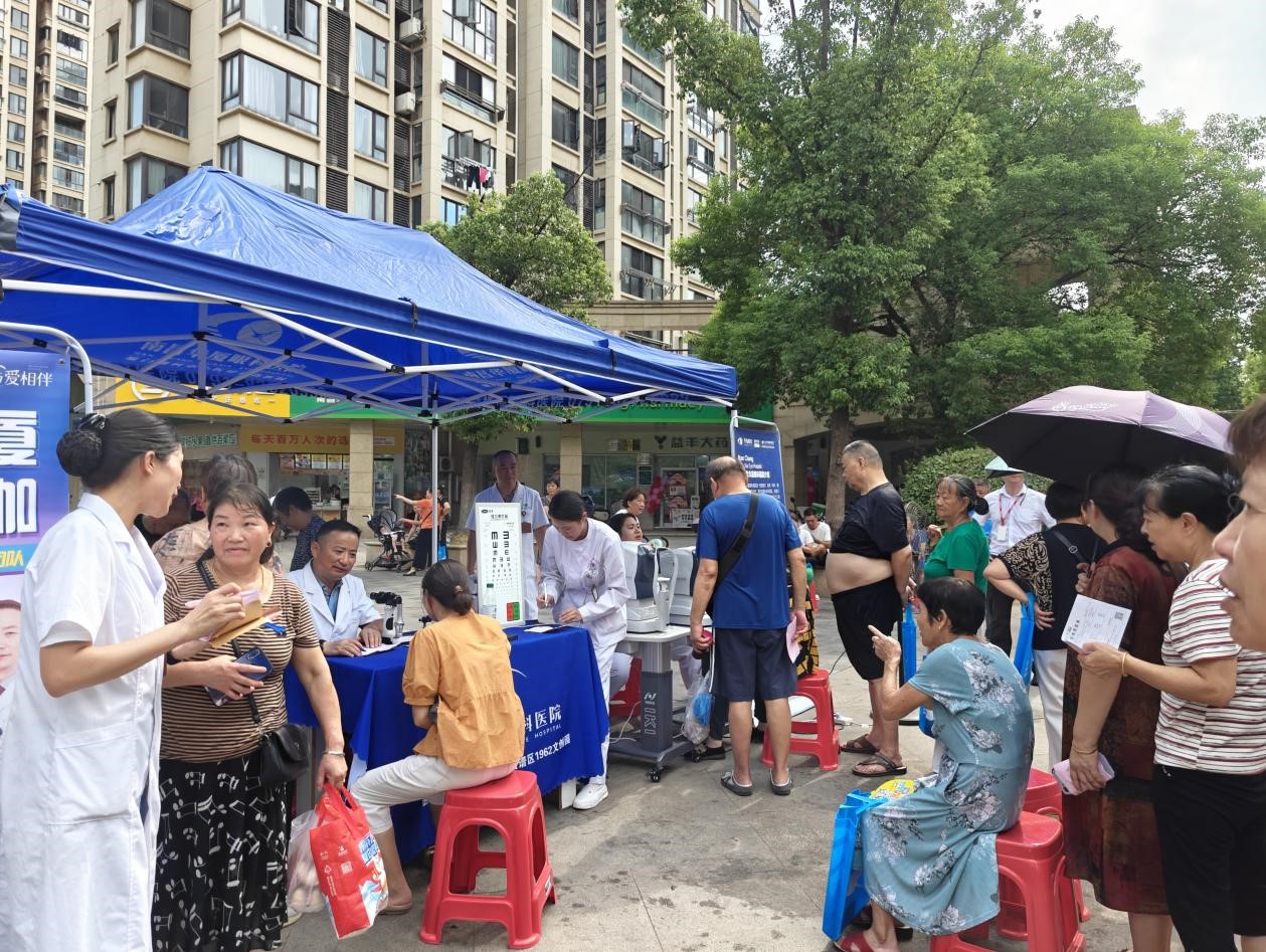 啟動儀式上,參會嘉賓為本項目已開展手術患者揭去紗布。儀式結束后,廈門眼科中心南昌眼科醫院專家團隊在社區廣場開展義診,為近百名社區居民進行眼健康公益篩查,開展眼健康科普宣傳,讓群眾在家門口就能享受到優質的醫療服務。