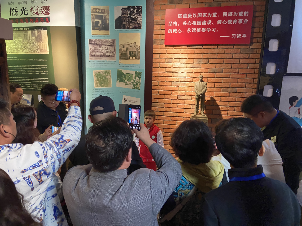 下午,采訪團一行來到昆明僑光小學,開展“追夢中華·重走滇緬路——紀念陳嘉庚先生誕辰150周年微課堂”活動,進一步了解南僑機工回國抗戰的壯闊歷史,探討嘉庚精神的歷史意義和時代價值。隨后,大家參觀了僑光小學校史館和南僑機工英雄墻,聽著兩位學生講解員聲音清脆、感情飽滿地講述僑光小學與陳嘉庚、南僑機工的淵源和歷史傳承,大家深感這就是嘉庚精神代代相傳的最佳具象化。采訪團成員、美國華盛頓中文電視臺副臺長袁艷表示,這么多青少年關注歷史,我看到了傳承嘉庚精神的接力棒在一代一代地傳遞著,我們將通過自己的媒體平臺把陳嘉庚先生的故事、南僑機工的故事說給世界聽。