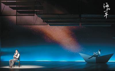 在《海的一半》的舞臺上,現代感的舞美設計豐富了“?!钡奈兜?。帶有閩南韻味和南洋風情的民居、漁船、海港,把觀眾帶入海濱僑鄉的氛圍;以16塊巨大吊板組成靈活變化的舞臺背景,時而映照成一片溫柔霞光,時而化作簡約的漁船,時而旋轉拼接成巨型會議桌,成為貫穿全劇“漂泊感”的具象載體。
