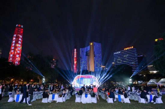 18點45分,東莞地標齊齊點亮,多幢摩天大樓外墻流光溢彩,將活動氛圍推向了高潮?!皟S連五洲·華裔杰青論壇”“海外才俊聚東莞”等主題字樣在燈光與屏幕的交相輝映中熠熠生輝。隨后,僑界代表帶來深情的詩朗誦,以真摯的情感追憶陳嘉庚的家國情懷,引發全場共鳴。