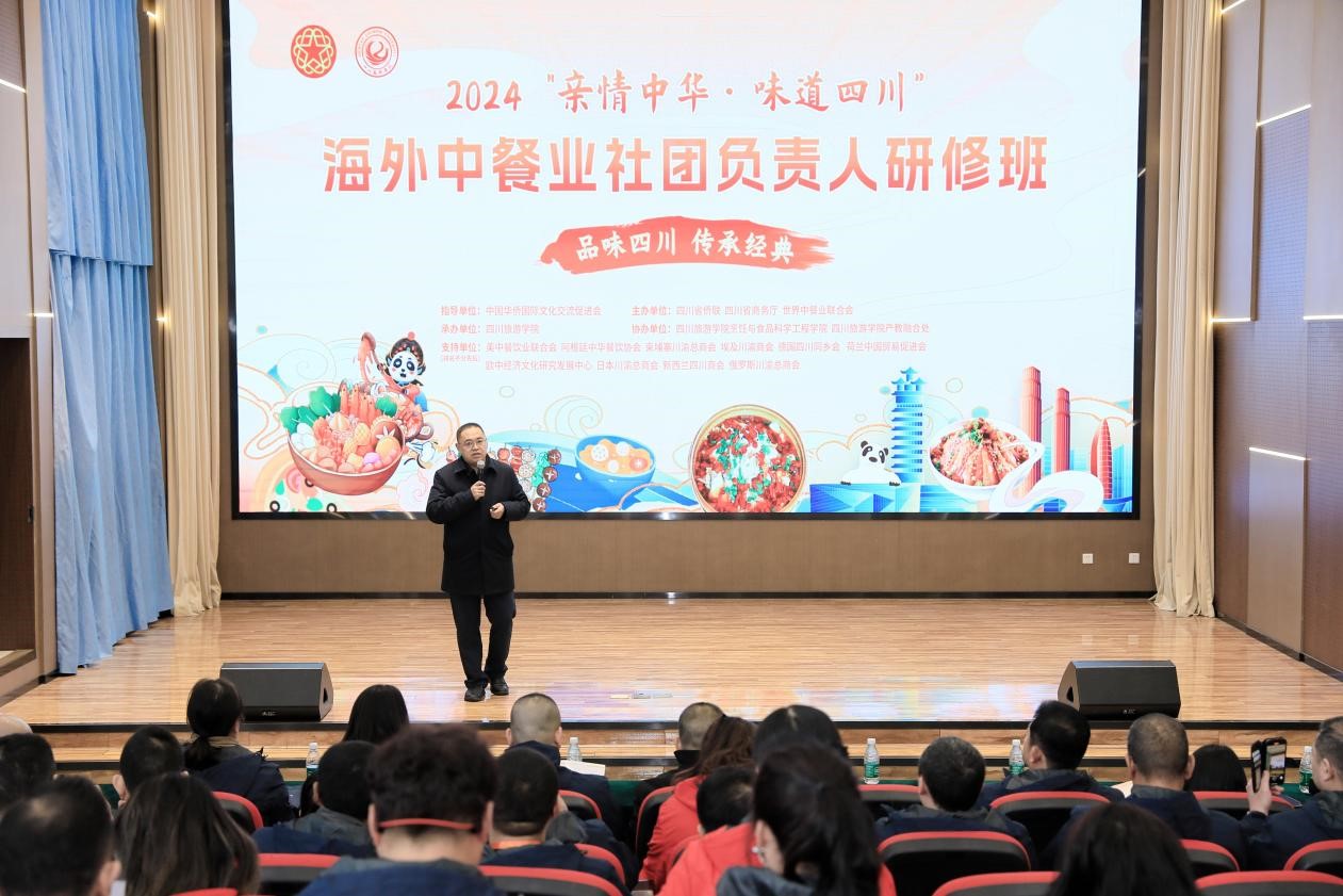 2024年12月11日,2024“親情中華·味道四川”海外中餐業社團負責人研修班開班儀式在四川旅游學院舉行。本次研修班由中國華僑國際文化交流促進會指導,四川省僑聯、四川省商務廳、四川旅游學院和世界中餐業聯合會共同主辦,旨在推動川菜美食文化走向世界,加強海內外中餐業交流與合作。