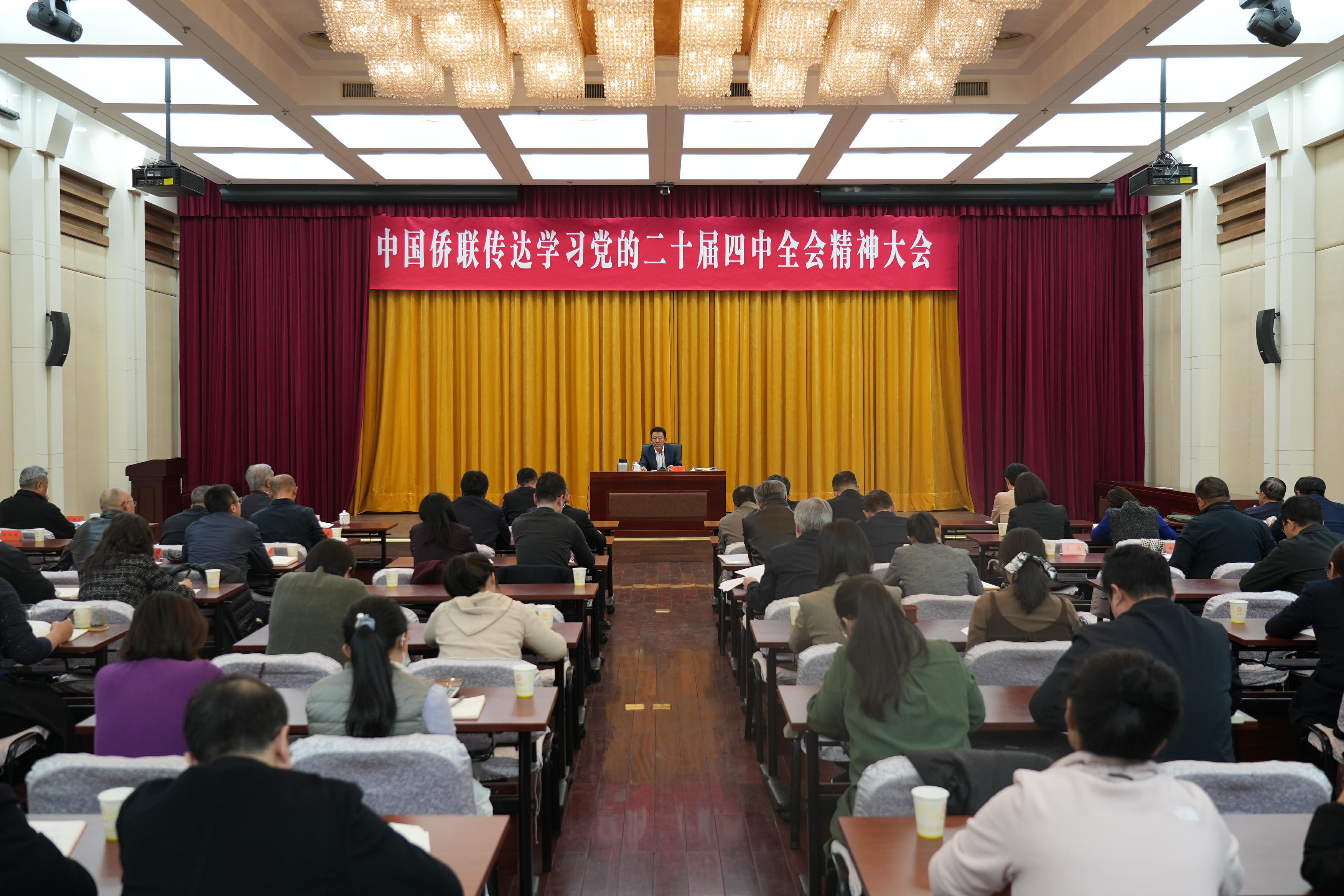 10月29日,中國僑聯召開傳達學習黨的二十屆四中全會精神大會,結合僑聯工作實際,研究部署貫徹落實全會精神的具體舉措。黨組書記、主席王靈桂主持會議并作宣講報告。